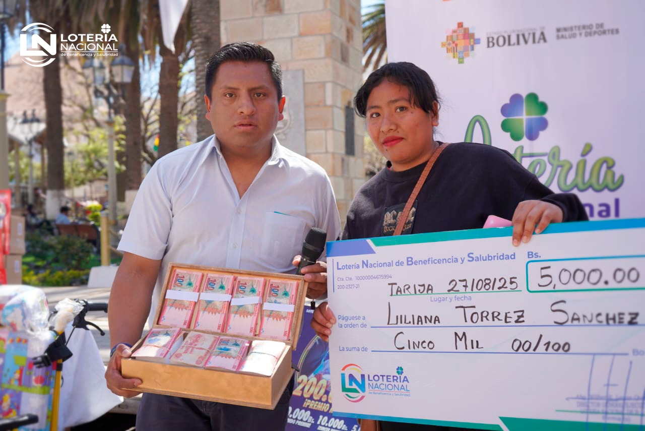 LOTERÍA NACIONAL ENTREGO EN TARIJA EL PREMIO MAYOR DEL SORTEO FELICIDADES BOLIVIA